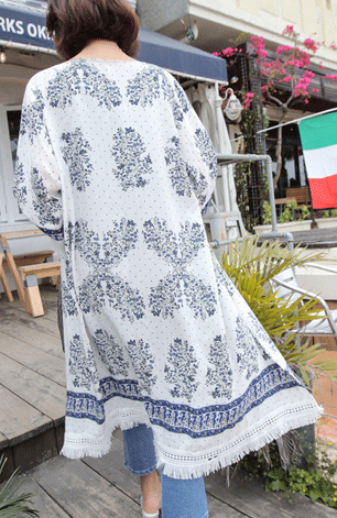ガウンカーディガン 夏 ロングカーディガン レディース 韓国 ファッション エスニック フリンジ 花柄 ガウン 七分袖 肩掛け カーディガン UVカット 日焼け防止 紫外線対策 冷房対策 水着 はおり サマー カーディガン リゾート[spd]